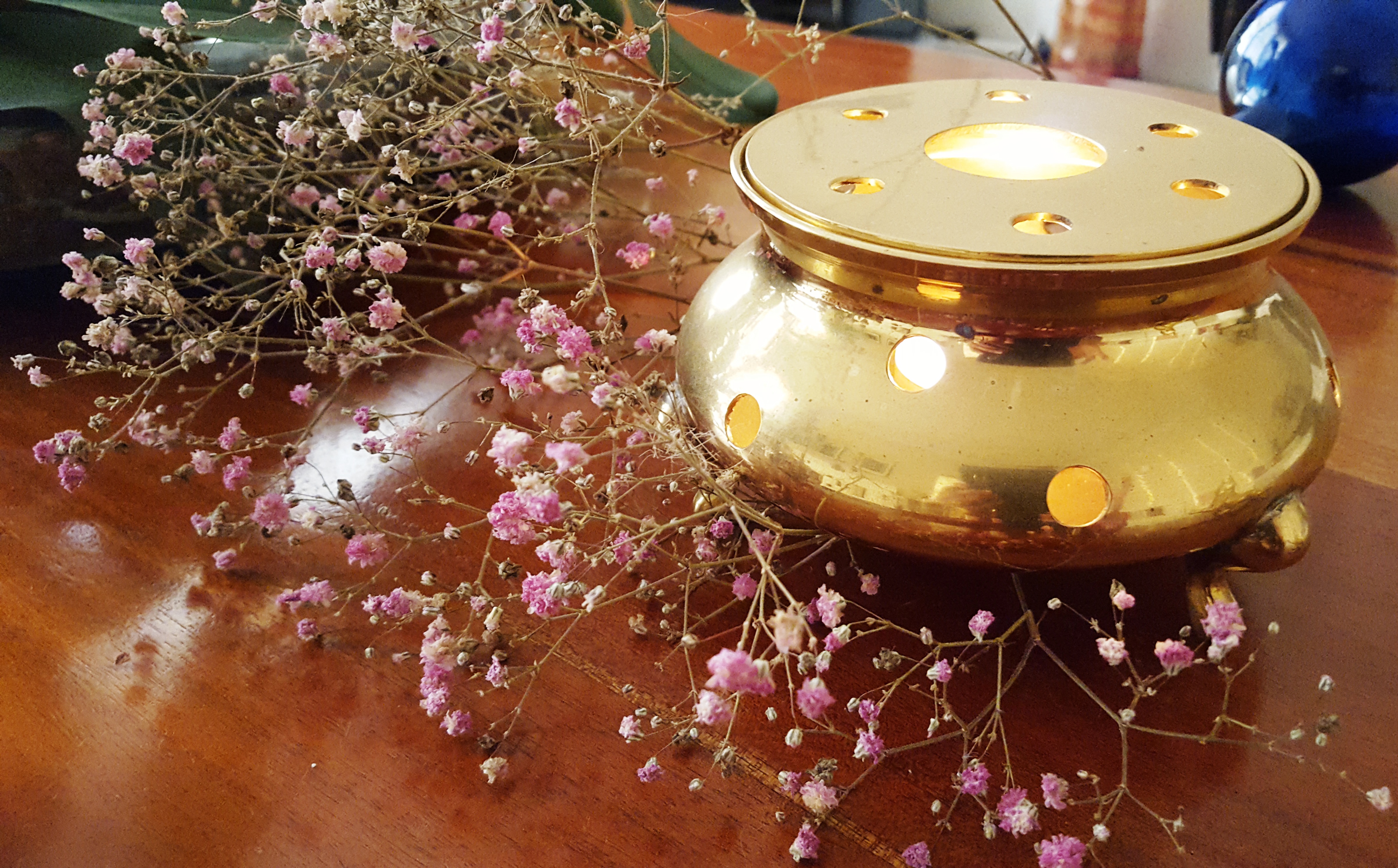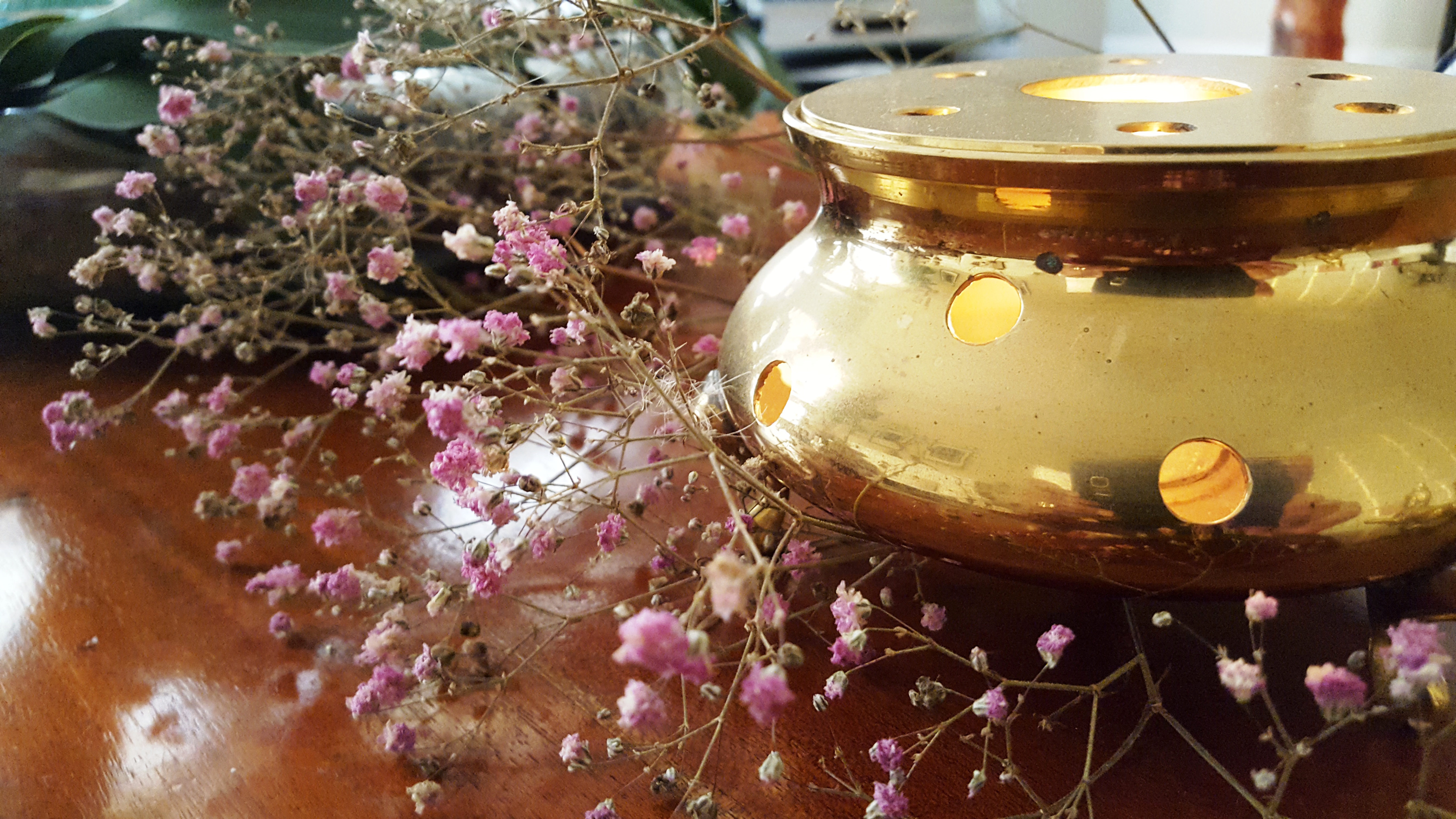 Diwali or Deepavali, the “festival of lights” is a very auspicious festival, and as it’s related to lights what better way to describe this occasion. I thought this time before I start bombarding you with food galore, I wish to share some of my decorative tips and ideas. Many would agree before all the decoration goes on the house gets a good spring. This is something I have always done because I feel decorating my home is one way to spread the good spirit and in order to do that the house has to be clean and in the mood. I like to see clean decorations rather than mess around my decorated home. Sometimes it’s the least simple things that I collect and use for my decoration, as seen below a dry sprig of flower that I kept from a bouquet of flowers I was gifted a few months ago. The colours are so pretty I could not resist but to keep it. And now they will be scattered and adorn my table.