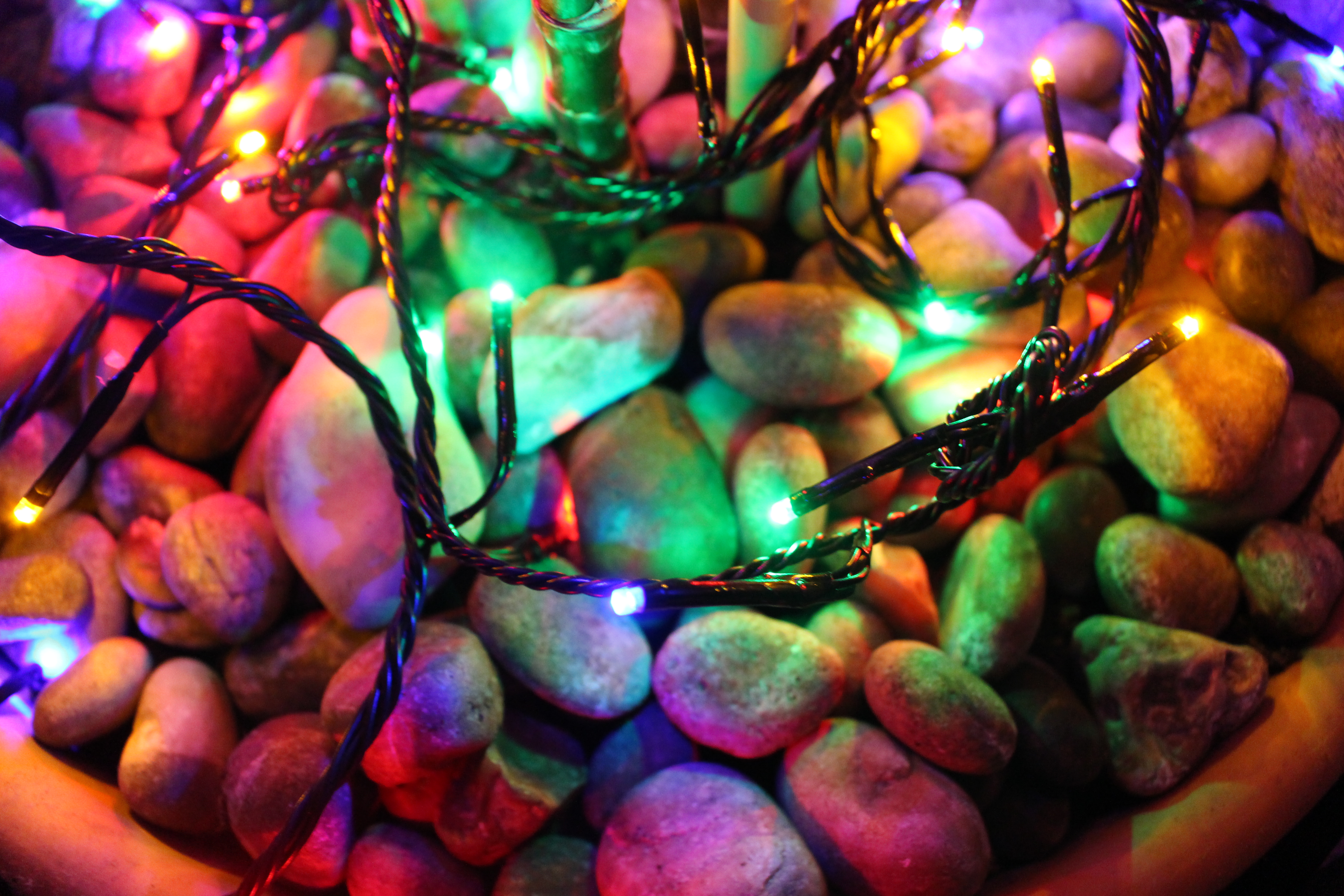 During festive times put fairy light onto the pebbles light up and let them show their real glow. Here just what I have done my fairly huge palm tree decorated with colourful fairy light takes me back to tropical sunshine Mauritius – makes me feel like being on holidays.