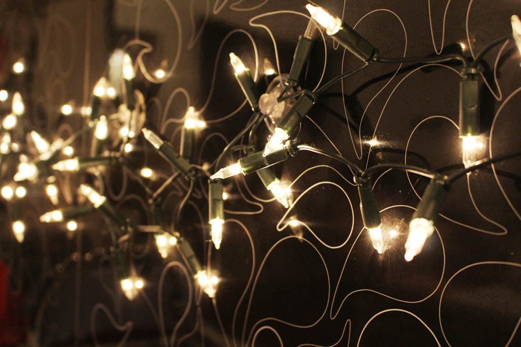 Display fairy light a splash back; light them up as the evening draws in and these lights gives an extra warm feel to the kitchen. The back drop of light while I am cooking gets me in the mood. All these costs very little and makes such a difference in this wintery weather.