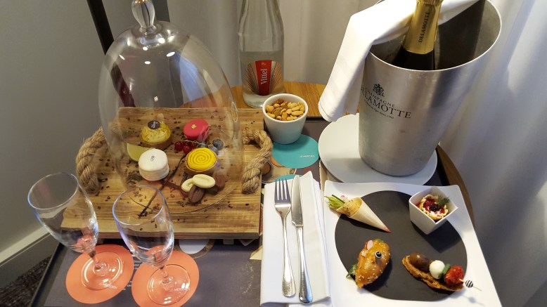 As a thank you gesture we have always had room service with a welcome bottle of champagne with canapes and delicious macaroons.