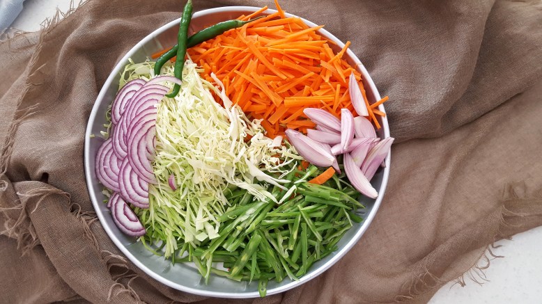 Back in Mauritius this mixed pickle is very popular almost any time of the year, and makes a perfect picnic bread roll filling.