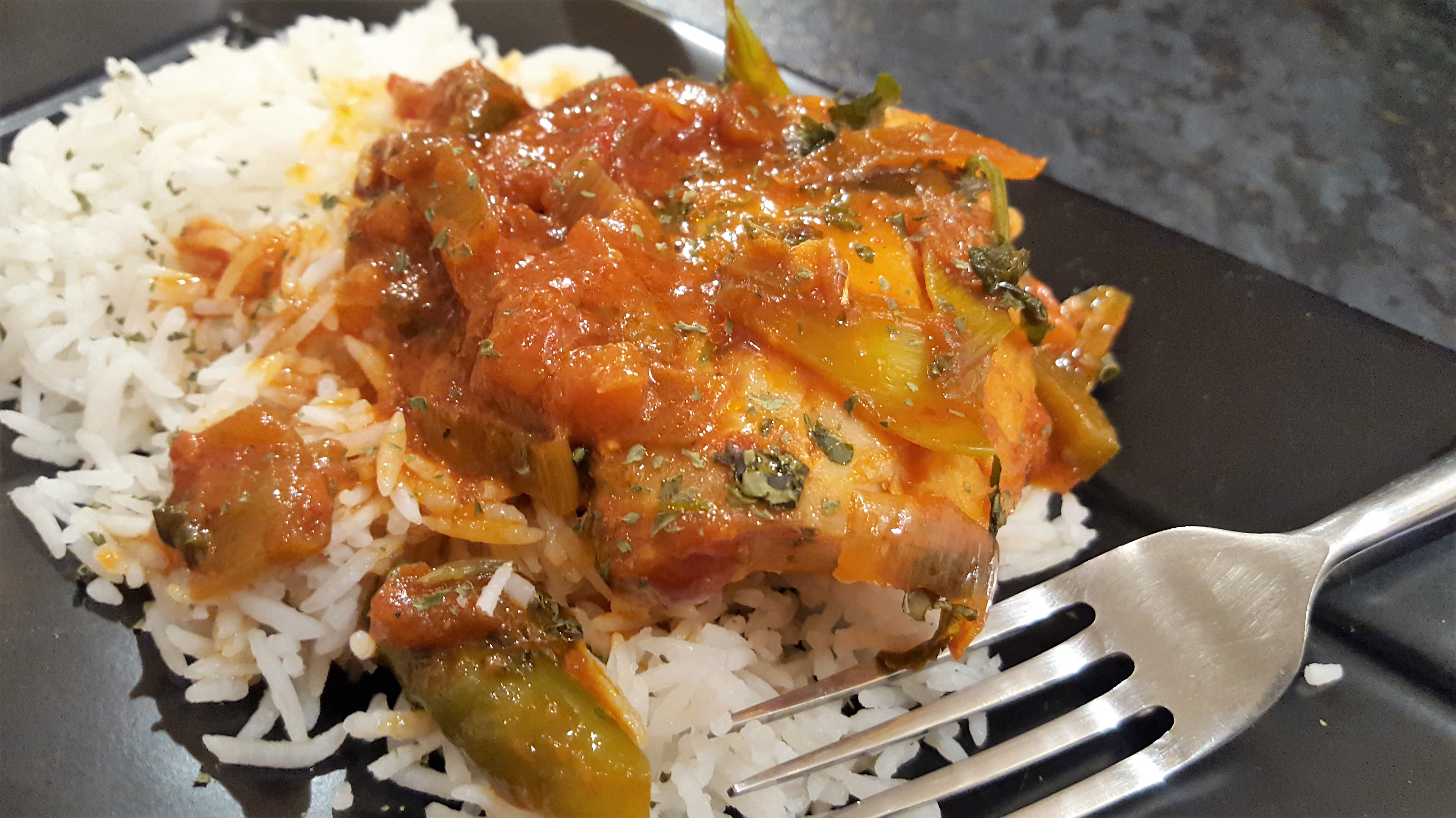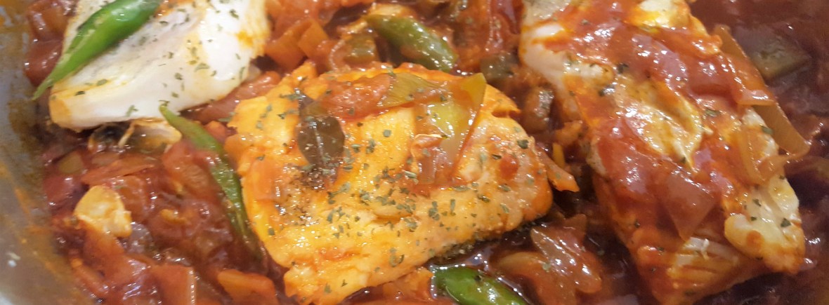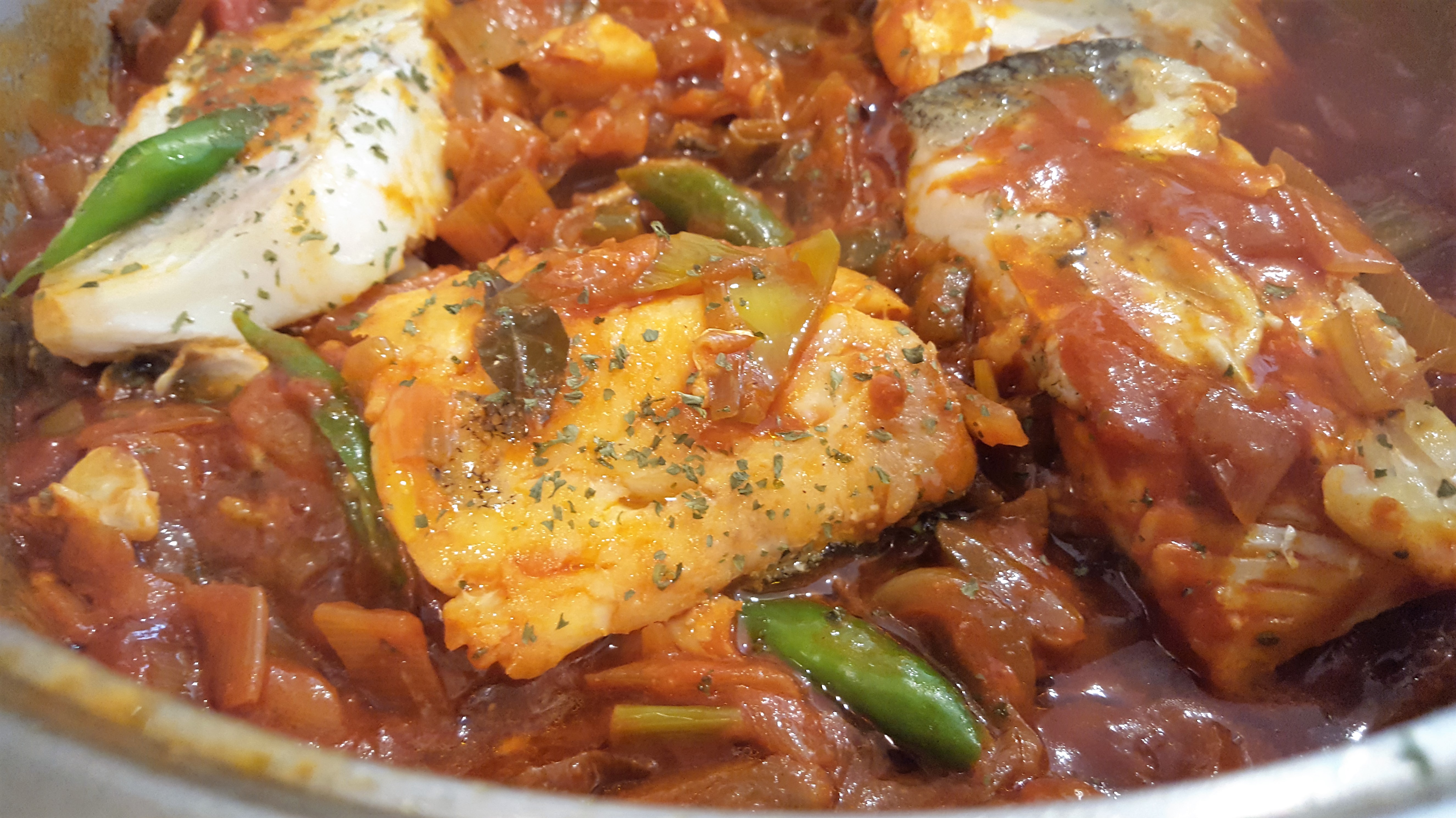 Spicy Smoked Cod in Rich Tomato & Mixed Grilled Pepper Sauce