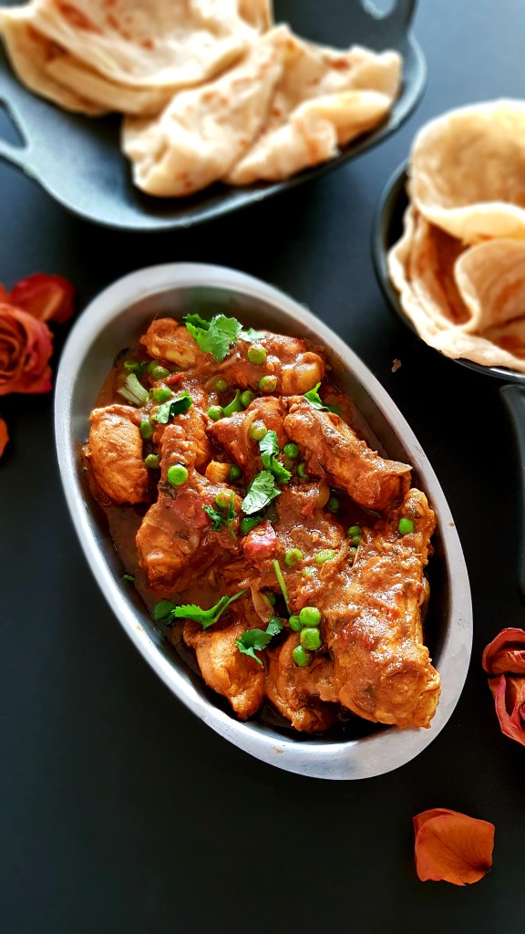 This chicken curry is so delicious, so taste and so full of flavours. Though it is a dry dish with very little gravy, you only need a little bit of the thick gravy served with just plain boiled rice or mop up with some roti or pharata. Add a fresh cucumber and carrot salad and you’ll have a well-rounded meal. And may I add to this, we always clean every little bit of sauce/gravy left in the korai by mixing any leftover rice straight into the korai and simply toss it all up – the best part of it all in my book.