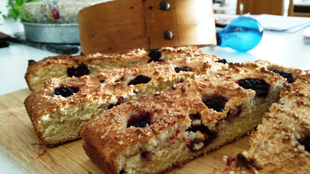 Blackberries are in season, and today before I left work, went into the back garden and noticed these juicy berries clinging on the branches…..surely I could not just leave them there to wilt away. Picked these sweet sharp berries and I had plans for them. And yes decided to make some Gluten Free slices using coconut flour. They’ve turned out better than I anticipated, coconut flour has a high absorption therefore it is important to adjust the amount of liquid you add to the cake mixture.