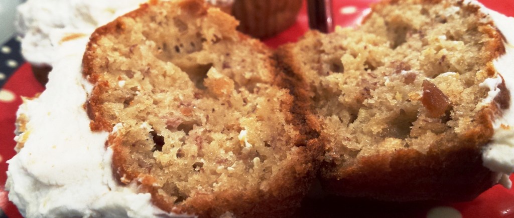 Well this morning I had no plans to bake any cake, but I noticed two very ripe bananas in my fruit basket stating at me. I had to do something with them; I could not let these sweet bananas go to waste. It was both to make banana fritters or cupcakes, decision was made and cupcake it was as you can see.