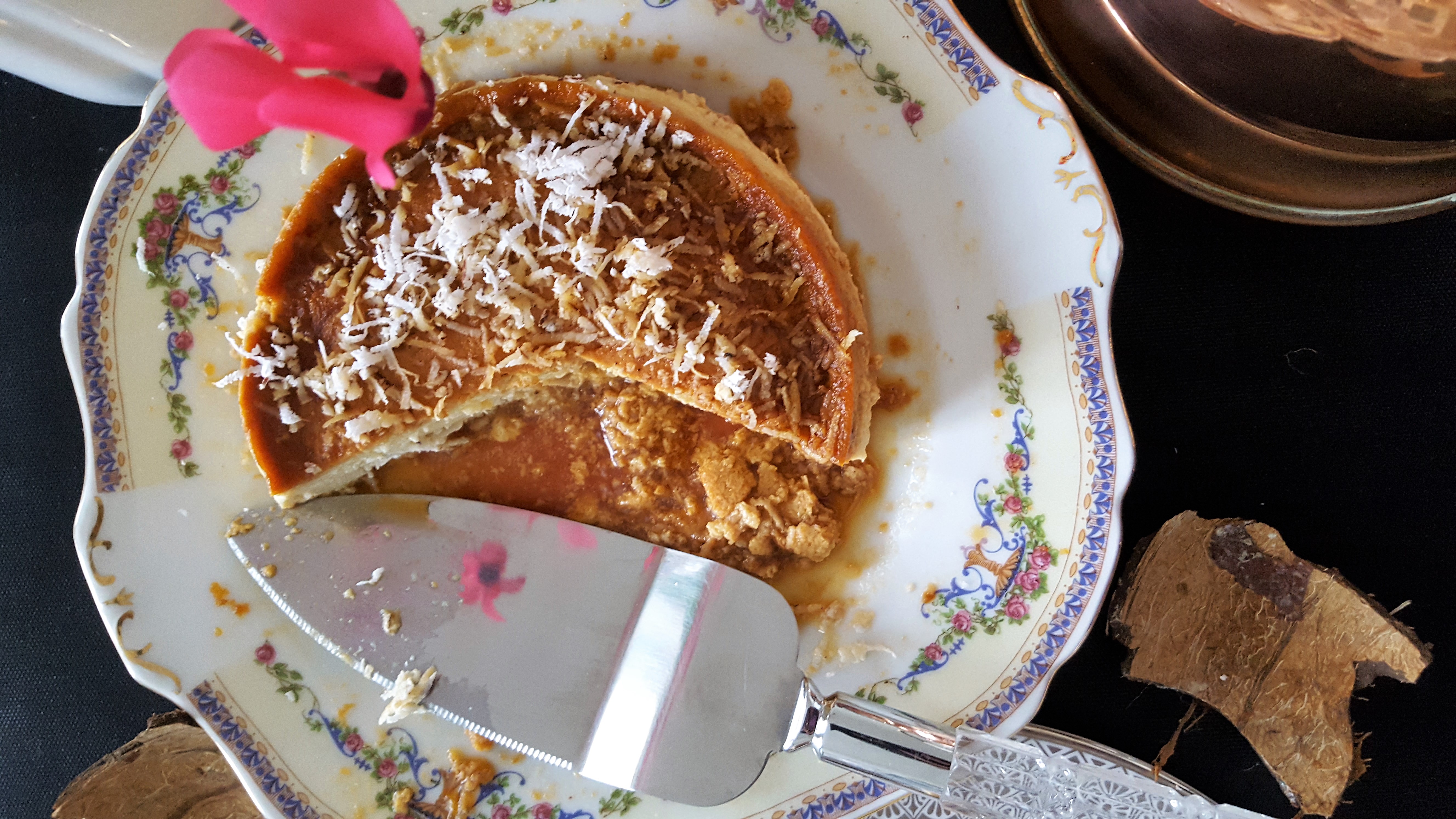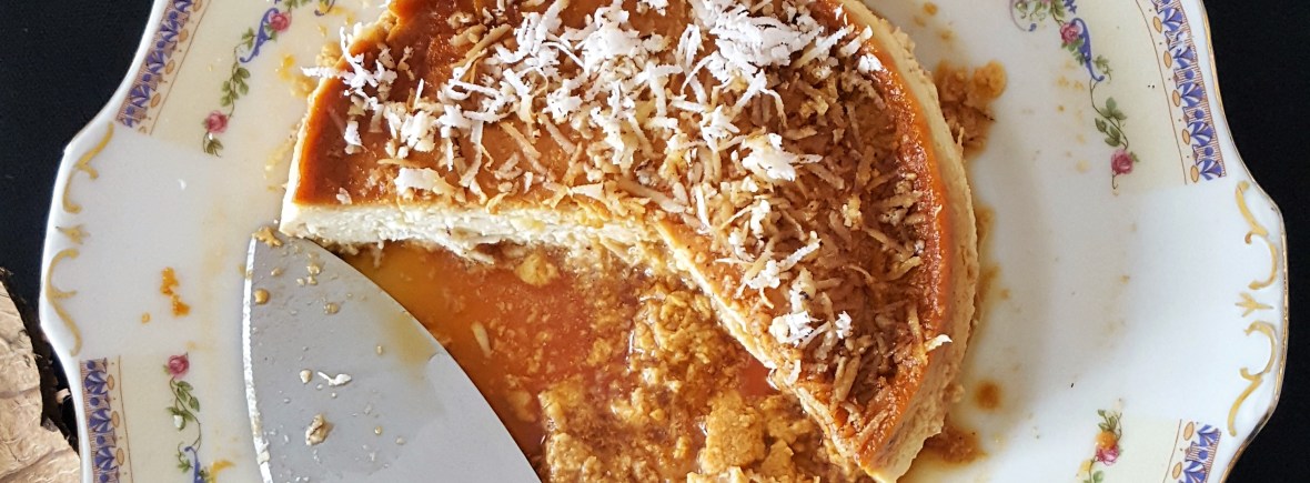 A sweet flan is one impressive dessert that always wows the guests. A delicious sweet custard flan that in my opinion everyone will love. With a good drizzle of caramel sauce that oozes from the bottom and spread all over the flan, giving that glossy golden outer layer of sweet slightly burnt toffee goodness. As it is the festive season, deciding on food menu to please all can be a little overwhelming. Why not try this super duper easy dessert to please everyone – let’s get the tropical flavours to this delicious dessert.