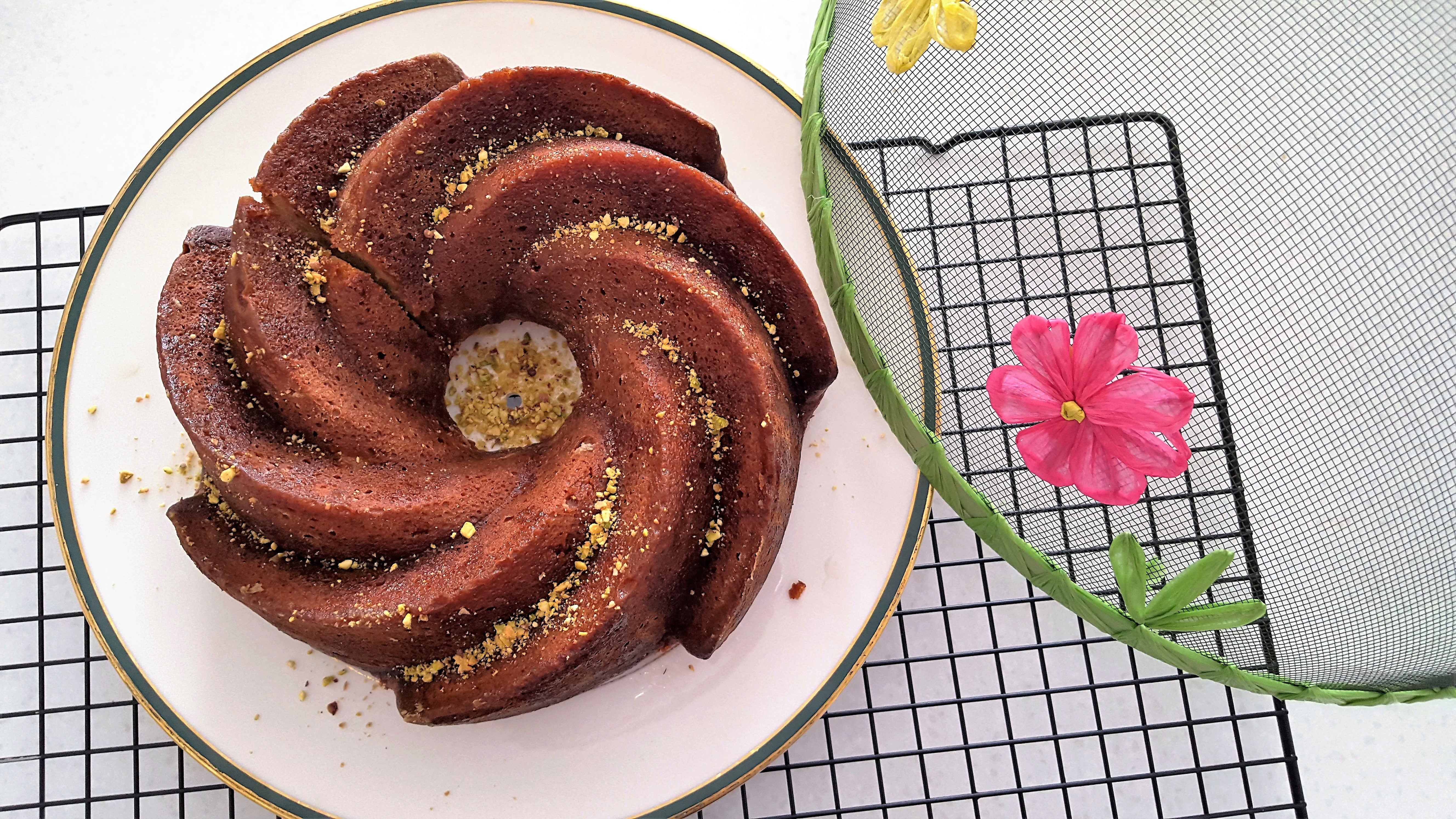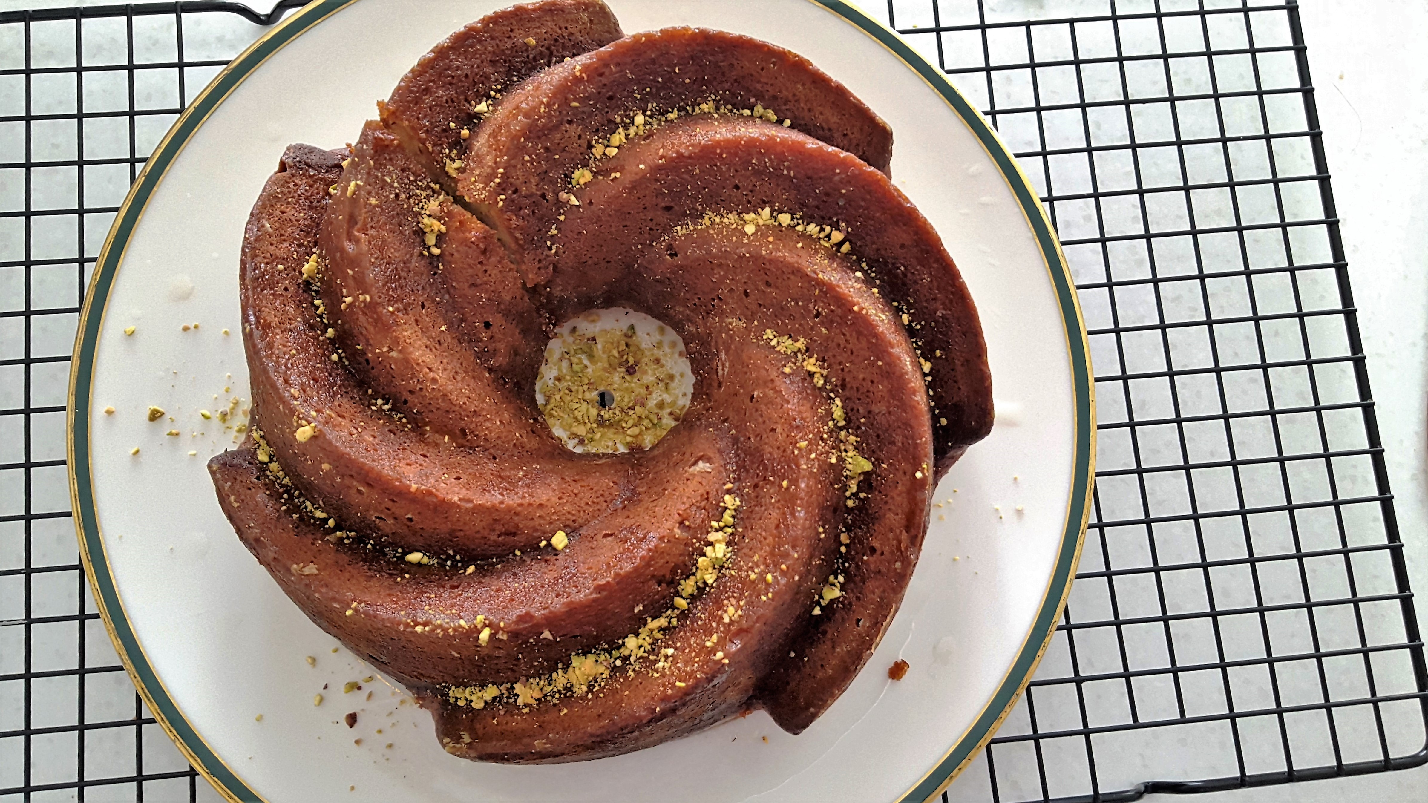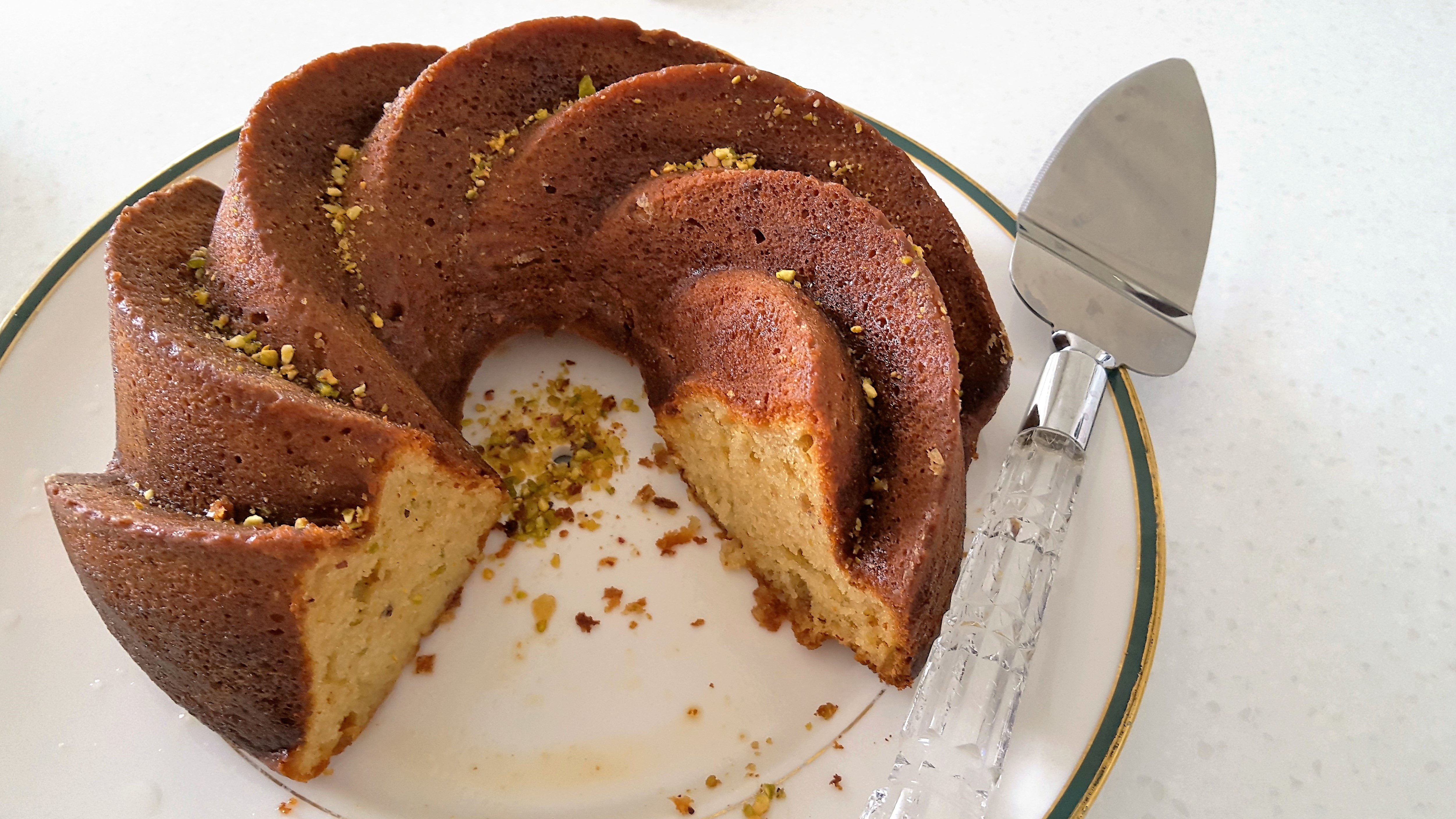 Pistachios & Honey Yoghurt Bundt Cake with Lime Sirop