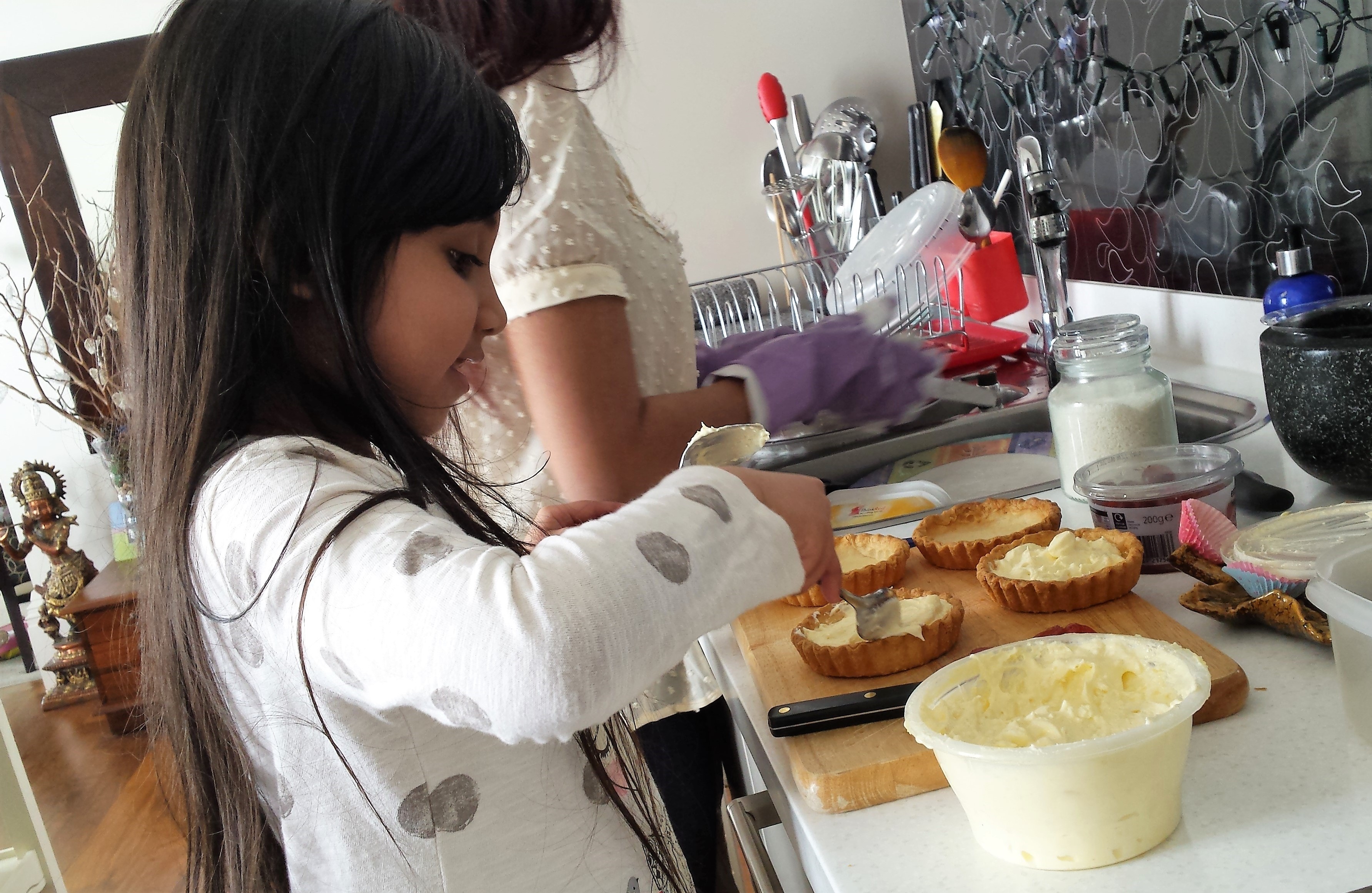 Puits D’amour is a mini tartlet very famous and popular and can be seen in almost all patisseries across the island in Mauritius. Here I have my two little apprentices helping me – Baking with kids is so much fun, here as you can see how much interaction we are having while I get my junior master chefs to help me. Kashina & Loushna are my gorgeous nieces who are keen to learn the trick of the trade and happily mastering the skills. Get your kids involved from an early age and watch them develop. It one way to get children understand and enjoy the benefits of homemade food.