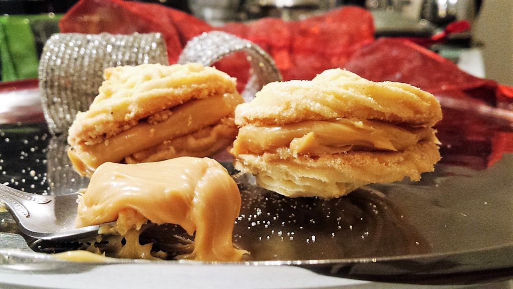 - For the filling, I have simply filled these little biscuits with salted caramel. Other alternative is to make a vanilla buttercream and spread in between to sandwich the biscuits.