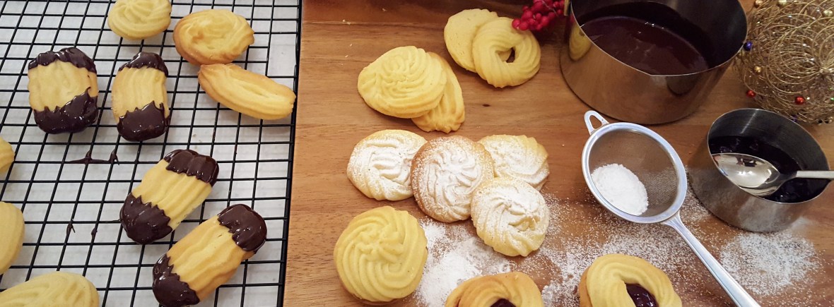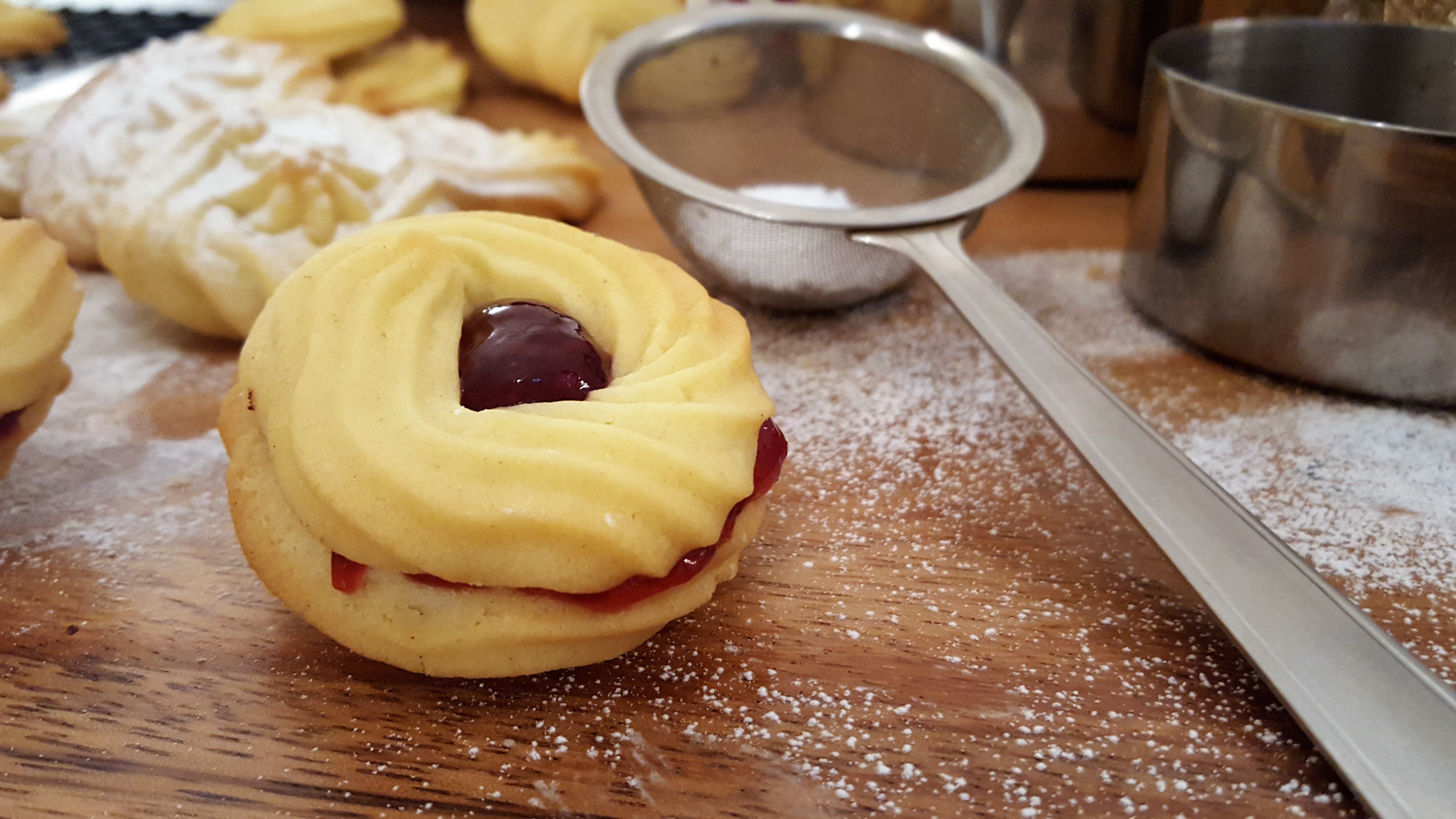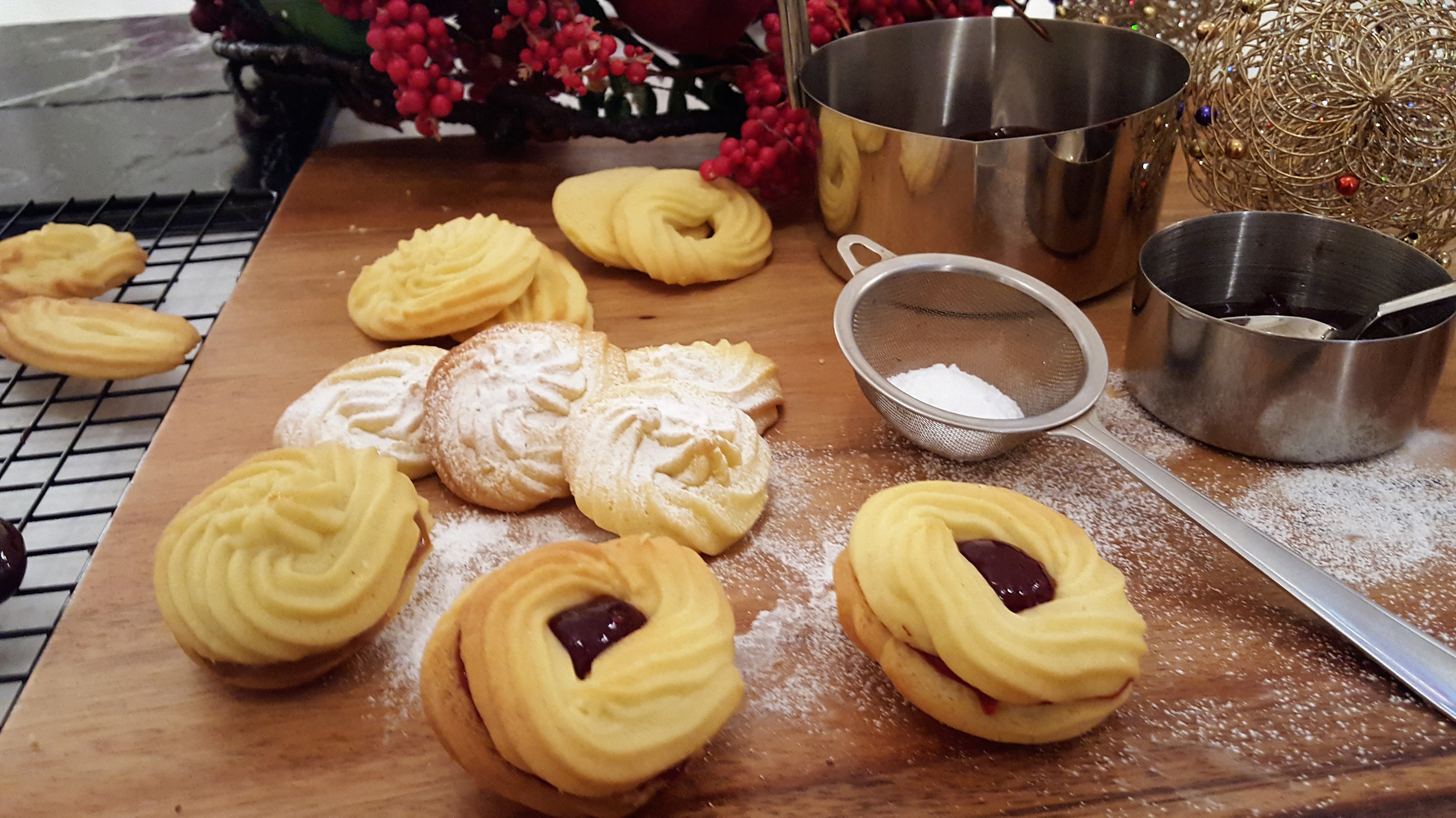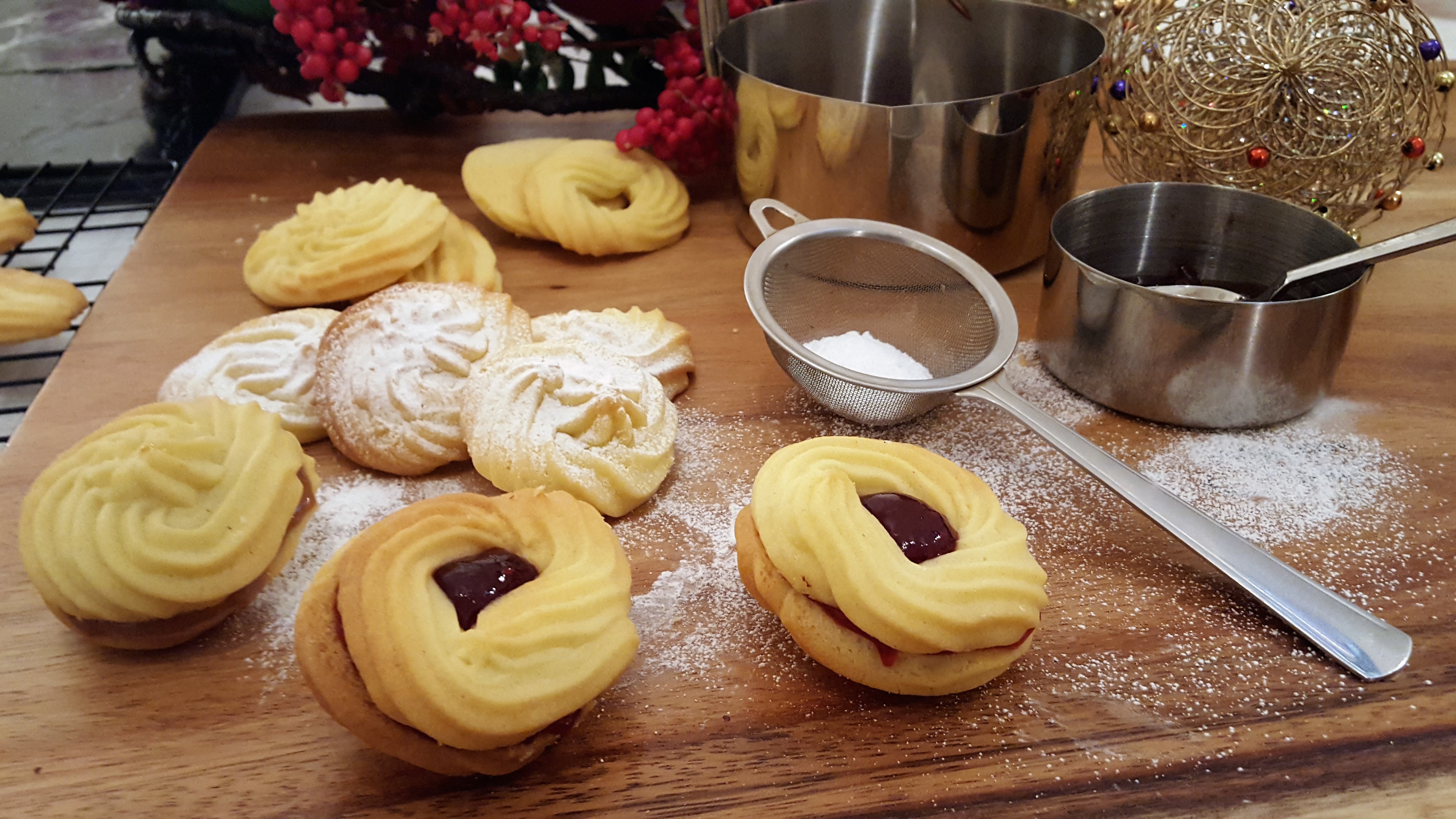 Viennese Biscuits with Selected Fillings – Salted Caramel, Chocolate, Jam & Icing Sugar Dusting