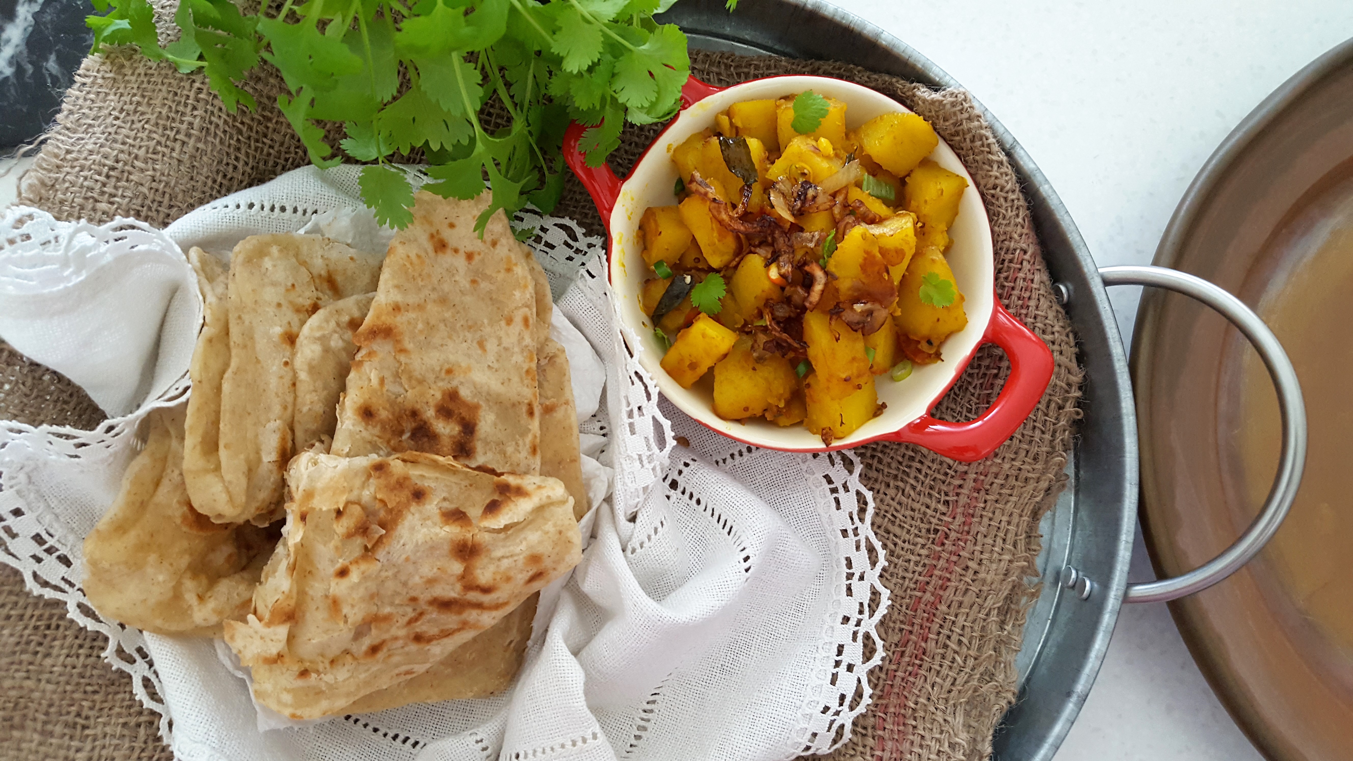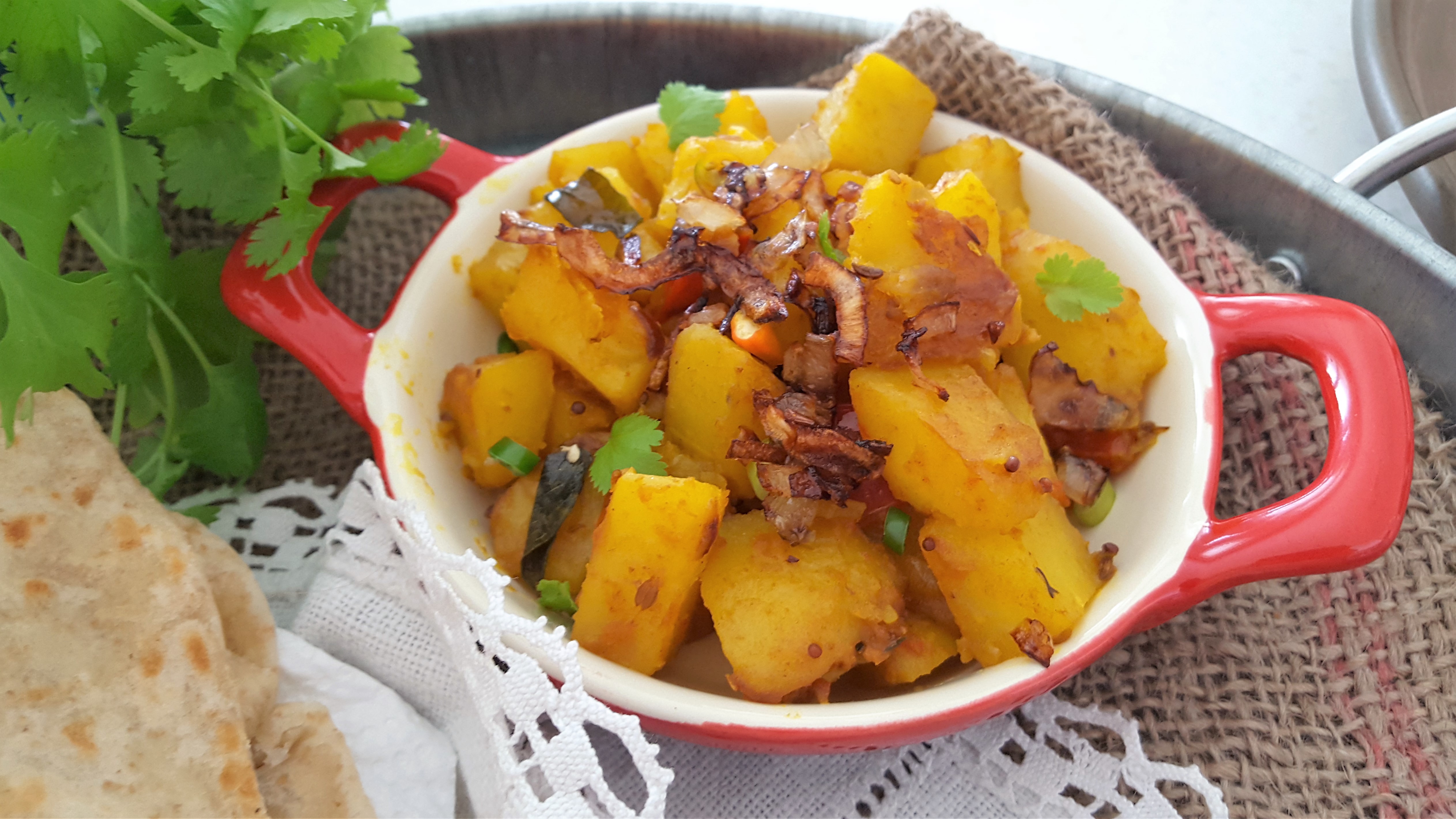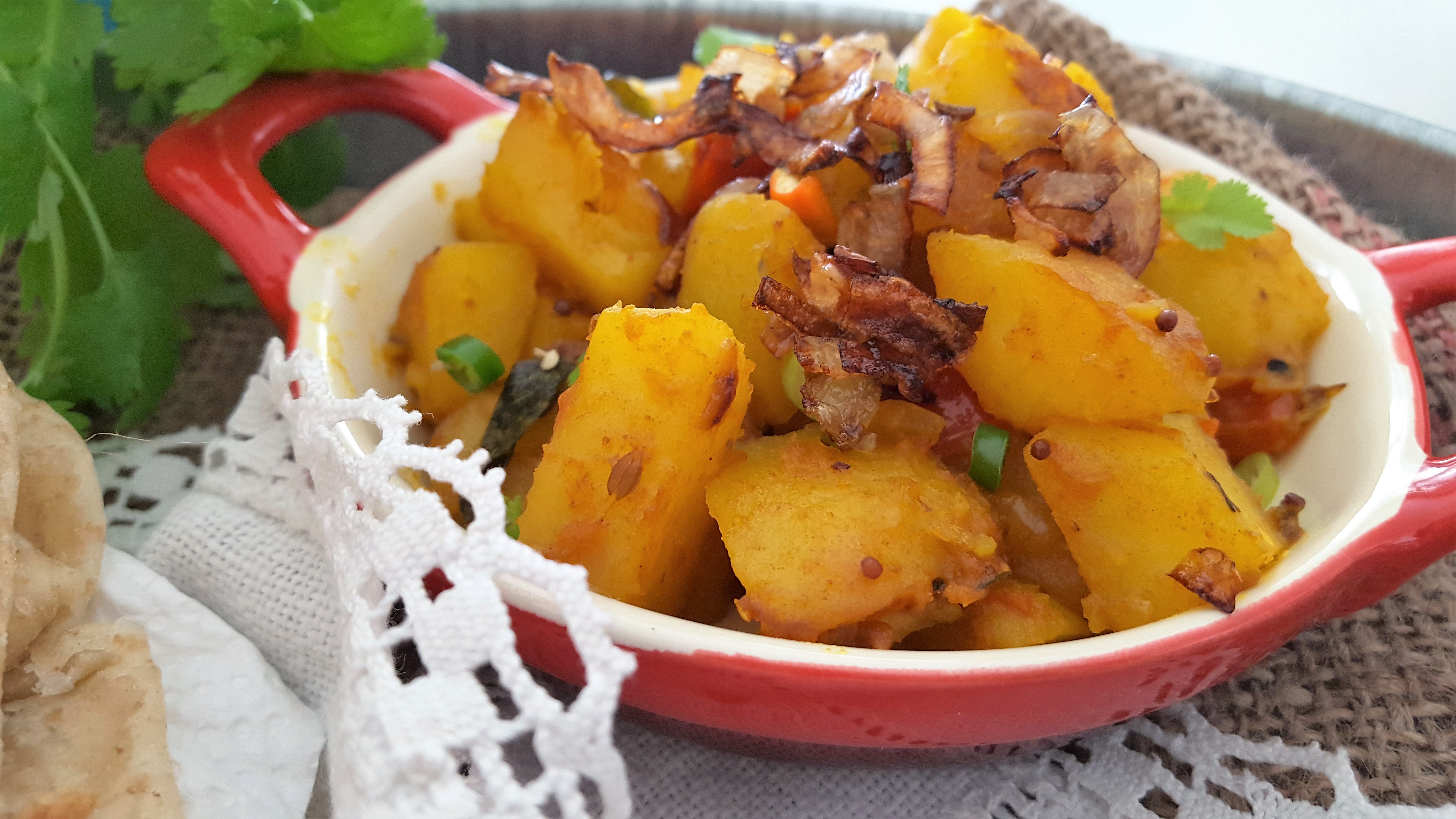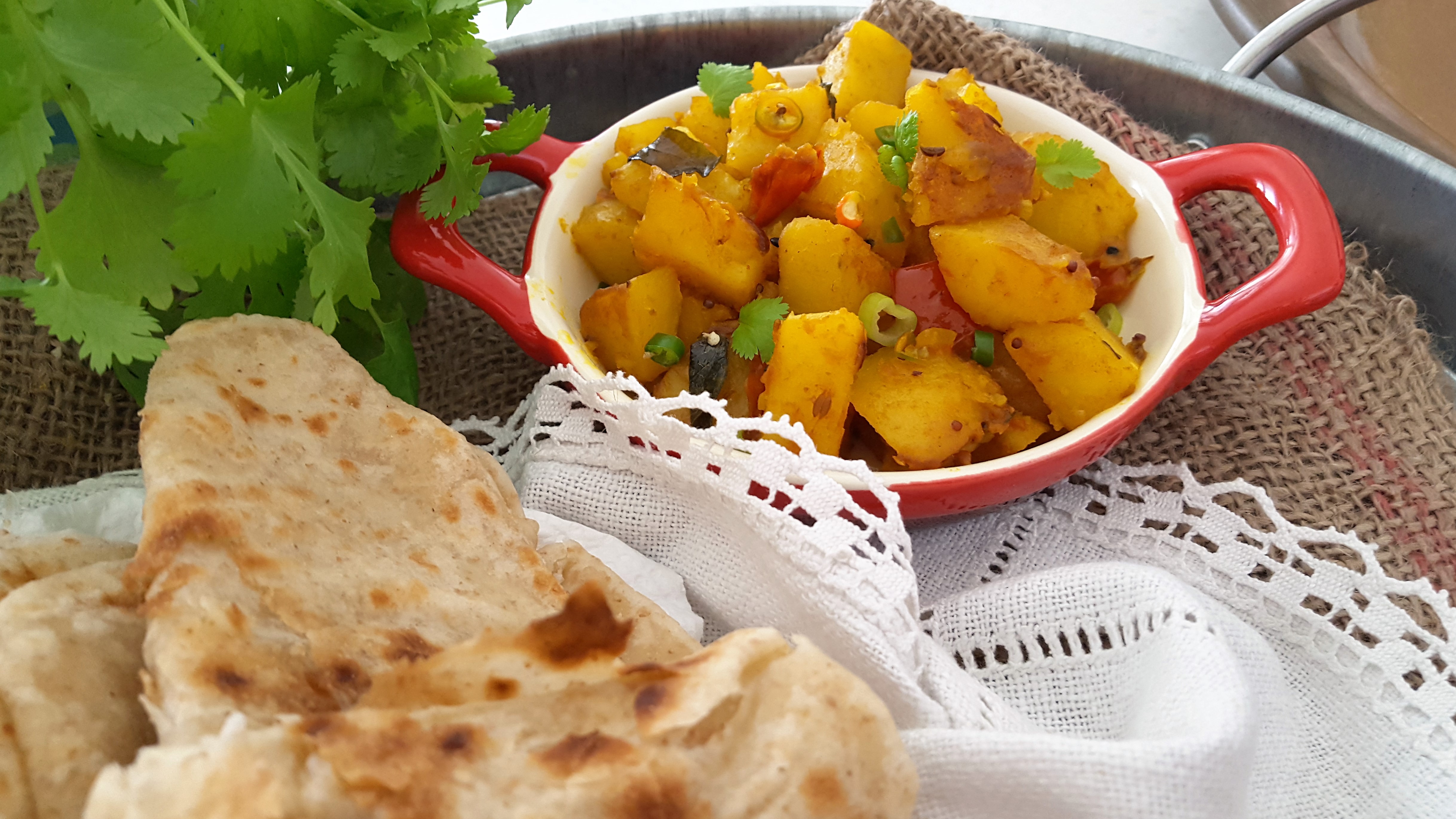 I love making this dish, it’s so easy and flavoursome. It can be made in very little time, and also a good way to use leftover boiled potatoes. The fried whole cumin seeds have a unique slightly nutty flavour. I like these delicious potatoes wrapped in either chapati or pharata or simply with boiled rice. Alternatively it makes a great accompaniment with roast meat or fish. A great vegetarian, vegan dish to please many. Perfect side dish…