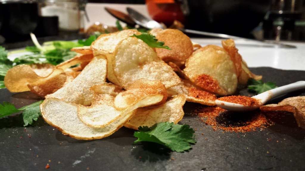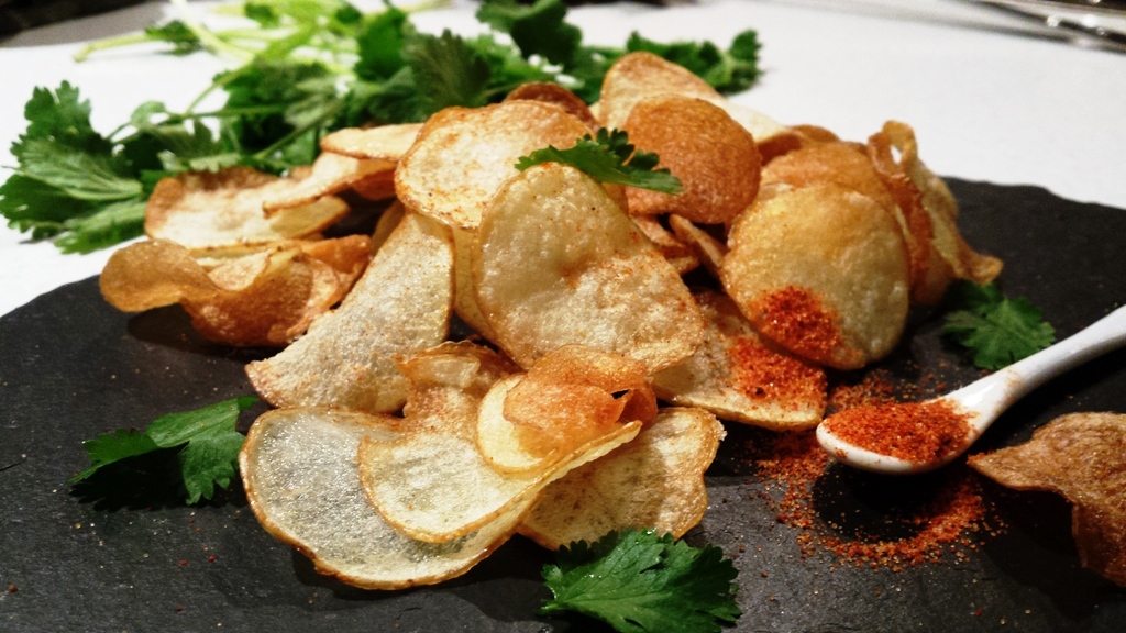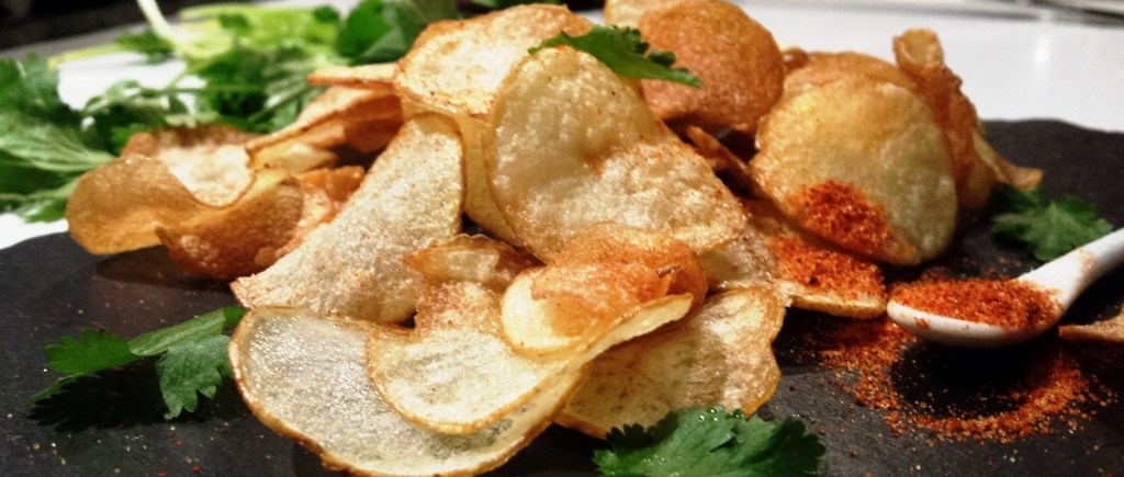Homemade Potato crisps with black pepper & Smoked Paprika salt