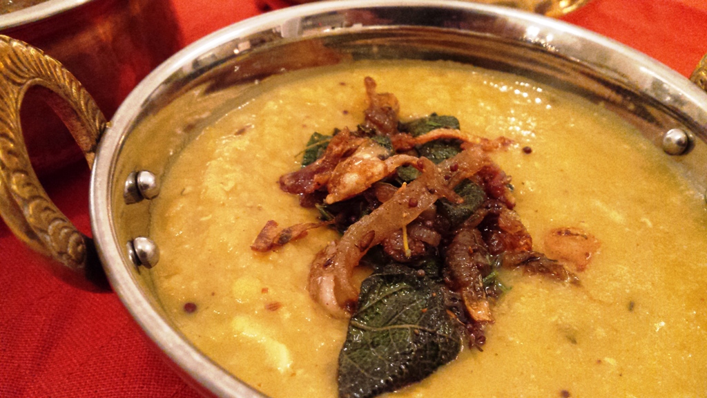 I cannot think of anything more comforting than a bowl of hot steamy “Tarka Dhal”. Dhal is a staple food, served in most Indian household – a true classic. Creamy, spicy, aromatic with a blend of golden roasted flavours of spices. Tarka dhal is very unique to each individual; this is my version, like most of my food I like them aromatic with subtle spices. Just by looking at a tarka dhal with all the ingredients in it may seems complicated but trust me this is a quick recipe. I use either red split lentil or Moong dhal for this dish as it does not take long to cook, turns very creamy and easy to digest. Enjoyed with Indian breads, rice, even with croutons or crusty bread. Here is one of my favorites, a very easy to cook meal that will be enjoyed by everyone.